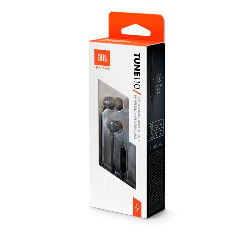 Le presentamos los auriculares intraaurales JBL TUNE110. Son ligeros, cómodos y compactos. Dentro de la carcasa de auricular duradera, un par de unidades de 9 mm ofrecen bajos notables y reproducen el sonido Pure Bass de JBL que ha experimentado en salas de conciertos, pabellones y estudios de grabación de todo el mundo. Además, el control remoto con un solo botón y el cable plano sin enredos le permiten controlar la reproducción de la música y responder a llamadas sobre la marcha con un micrófono integrado. Todo ello hace que los JBL TUNE110 sean su compañero diario en el trabajo, en el hogar y de un lado a otro.
